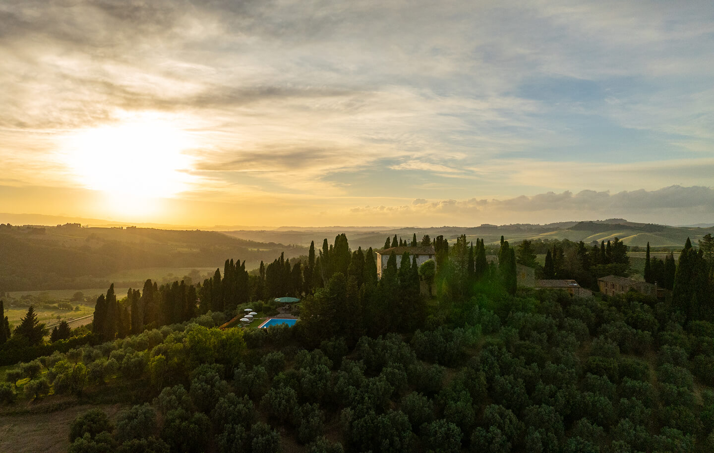 Villa Montaperti sorge nel cuore di una delle aree più suggestive della Toscana, tra Volterra, San Gimignano e le dolci campagne che si estendono fino a Siena e Firenze. Da qui, in pochi minuti d’auto, si raggiungono borghi ricchi di arte, antiche pievi, vigneti e panorami che sembrano usciti da un dipinto rinascimentale.